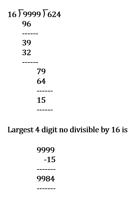 2. Find the largest 4 digit number divisible by 16.